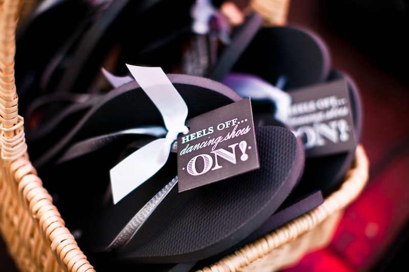 J Crew Flip Flops at the reception for guests to put their dancing shoes on! Such a great idea!