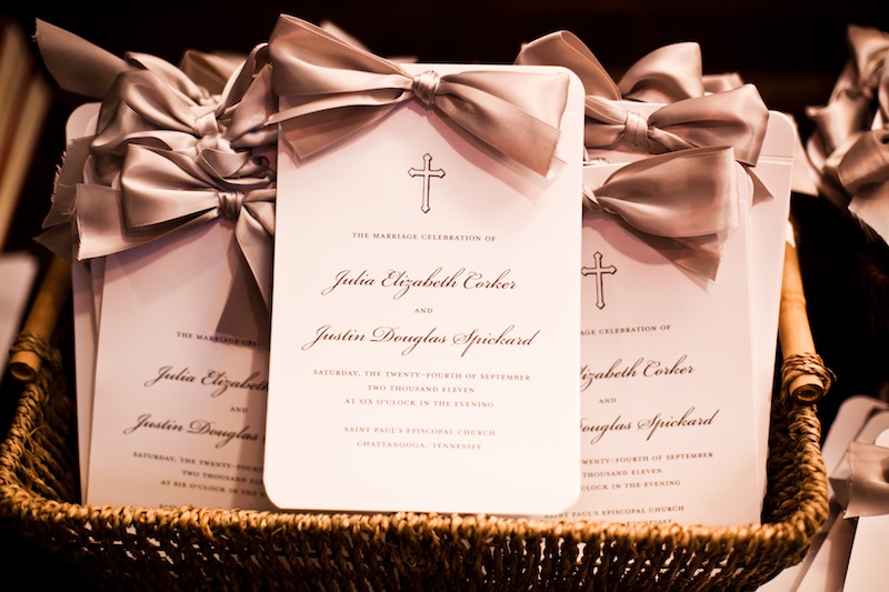 Love the programs with satin gray ribbon….elegant and stunning!