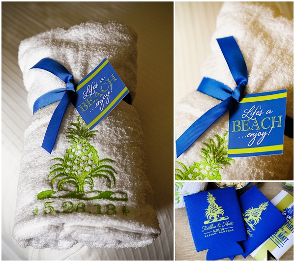 We can’t believe August is already here…where has our summer gone?! We hope y’all are loving our new blog design as much as we are–what do you think?!! Today we are excited to share part two of our feature on The Smith wedding! When guests travel from all over the country to the Bahamas for your wedding, what better way to say “thank you” than with a fun welcome bag?! Nothing says “welcome to the Bahamas” like a swanky bag filled with goodies!