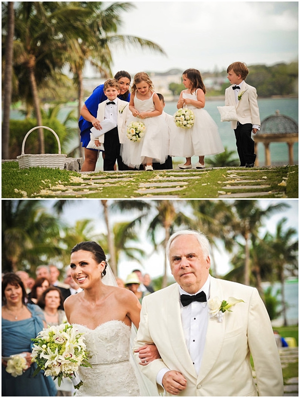 Today is the day: the conclusion of our three part feature on the Smith Bahamas destination wedding wedding! Which means today is…wedding day! The couple tied the knot at the super swanky One&Only Ocean Club in Nassau–it was out of this world amazing! We started off wedding day with a breakfast meeting at the Dune restaurant–the view was to die for!! We headed over for a site visit for the ceremony location…we were blown away! The backdrop for the ceremony included dramatic 12th-century arches with spectacular views of Nassau Harbor. As we got to work helping Dori and her team, the real fun began.