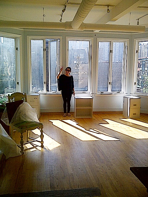 And that being said, we cannot show you the complete photos of the new office because we are not finished decorating….I know, I know…patience is a virtue people!! For now, this one will have to do–Day one. This is where our desks are now–over looking this FABULOUS window that will soon be the death of us in the winter…I just know it! HA!