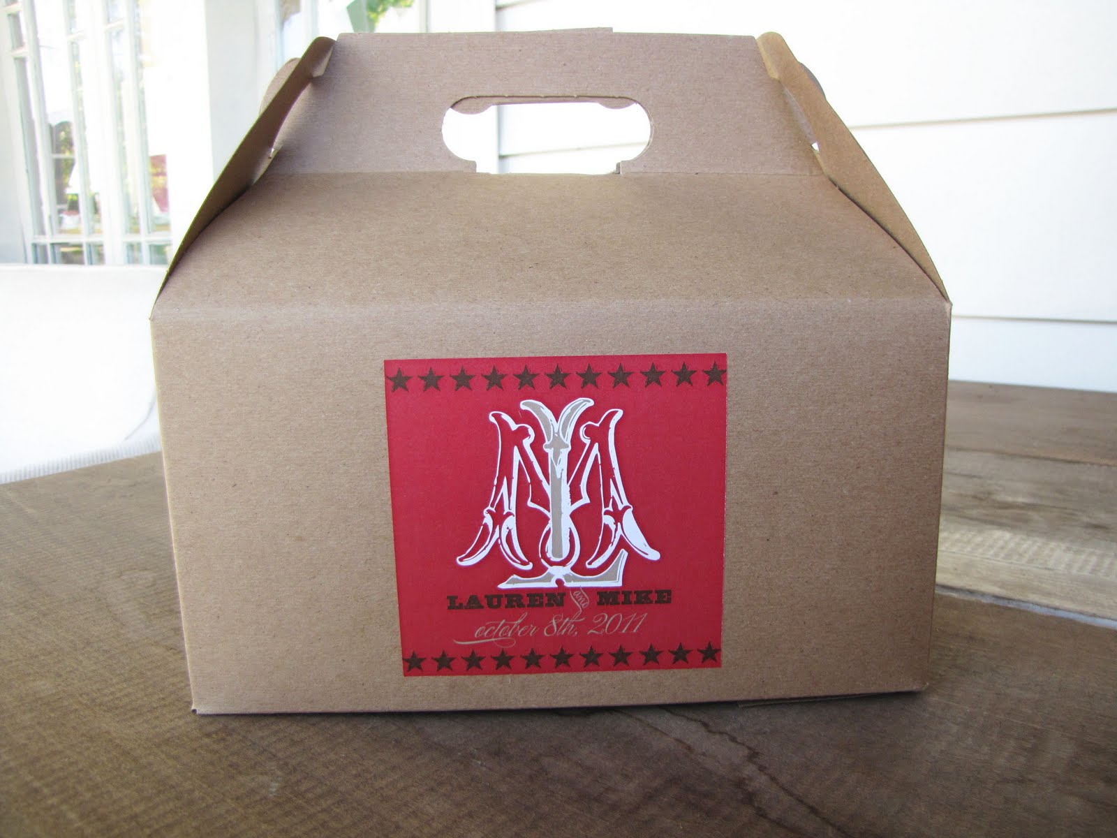 We did the most awesome wedding swag bags for a wedding we worked on with The Social Office in Nashville before we left! Bride and groom, Lauren and Mike, wanted something southern–and as our tag line denotes, swanky and southern is what we do!! Is it not so darn precious?!