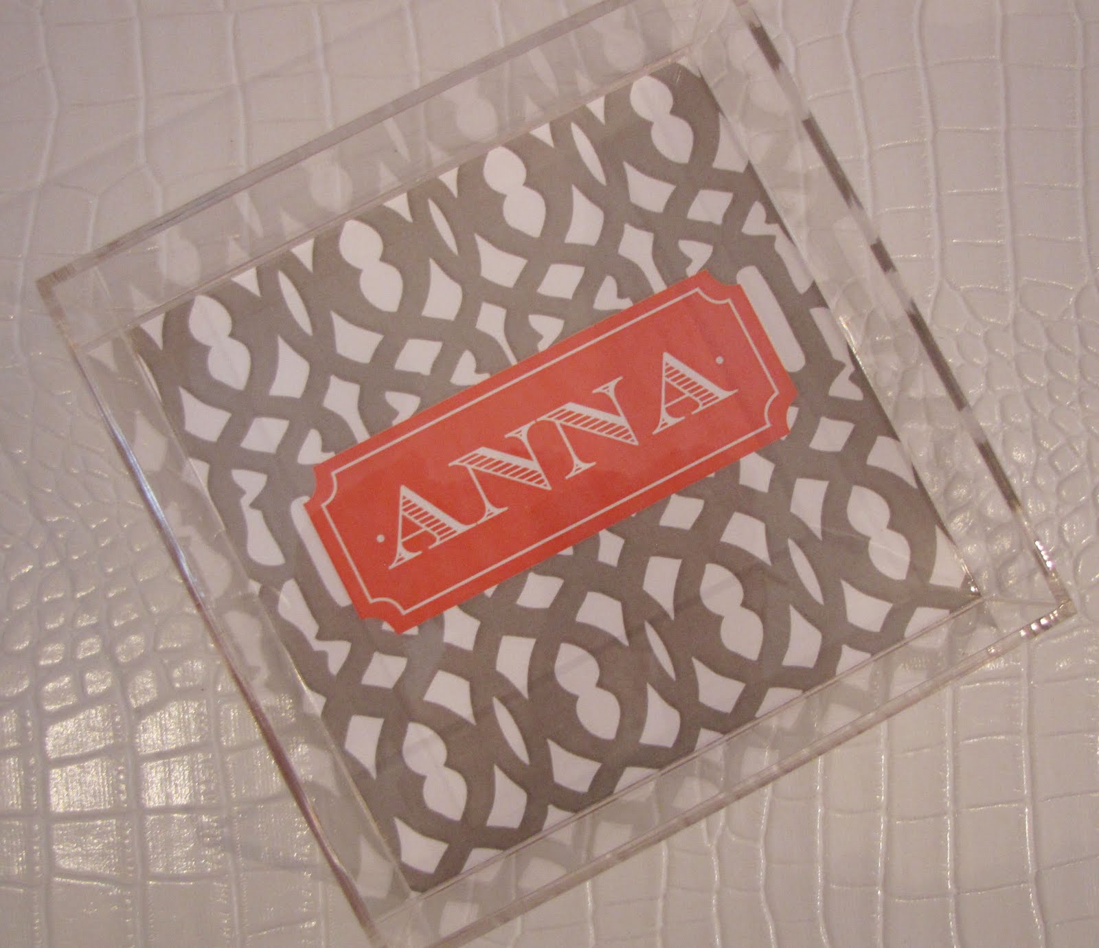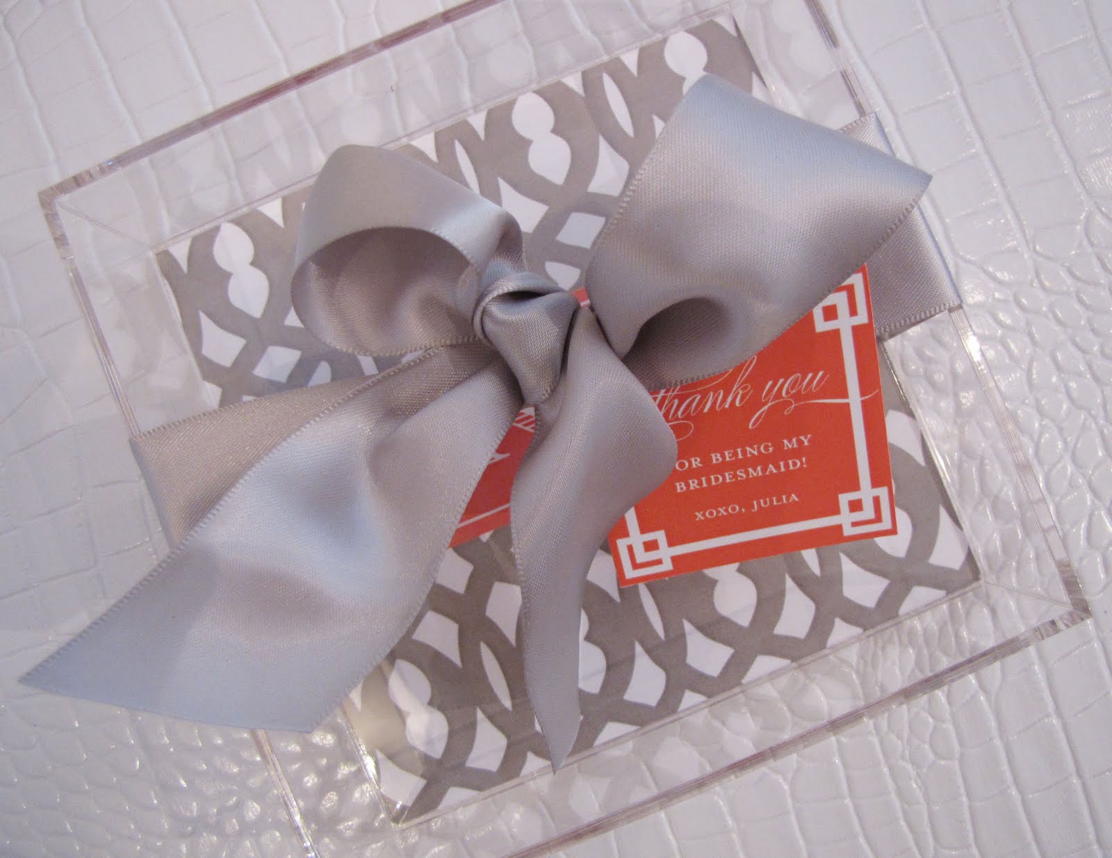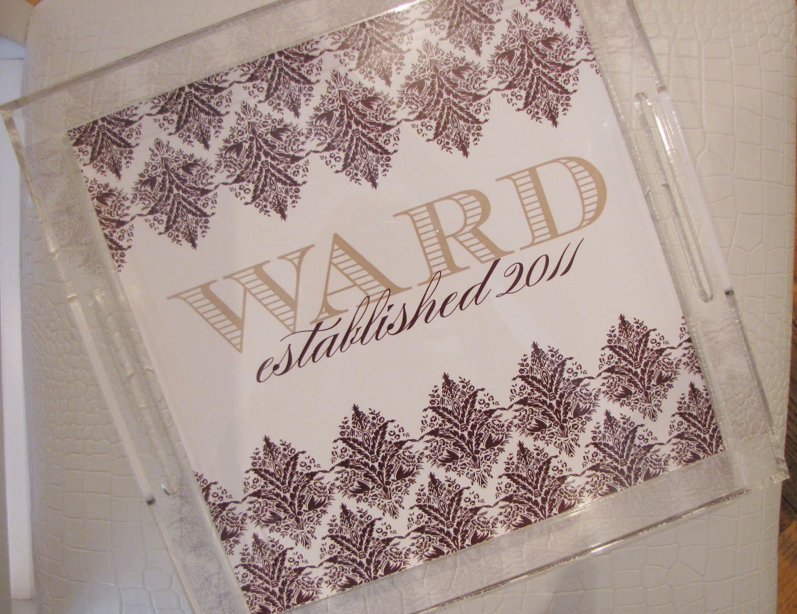 We matched her wedding invitations, since we did them, but you can do anything! Even though we have the lucite trays online for order, you can always email us for fancy pants custom work. Custom is our absolute specialty and is what we LOVE to do…making something one of a kind that cannot be found ANYWHERE else.