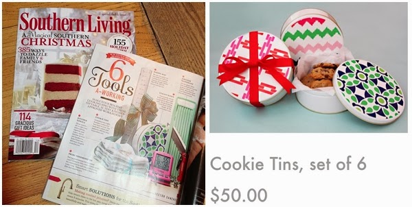 Speaking of Christmas…we’re thrilled to announce that our swanky new cookie tins are featured in the newest edition of Southern Living!! We dressed up Christmas cookie tins with bright colors and bold patterns–they make the perfect addition to your Christmas cookies for teachers, neighbors, coworkers, etc. Pick up the December issue of Southern Living today, and be sure to look for us on page 168! Or visit our website and shop our swanky cookie tins!!