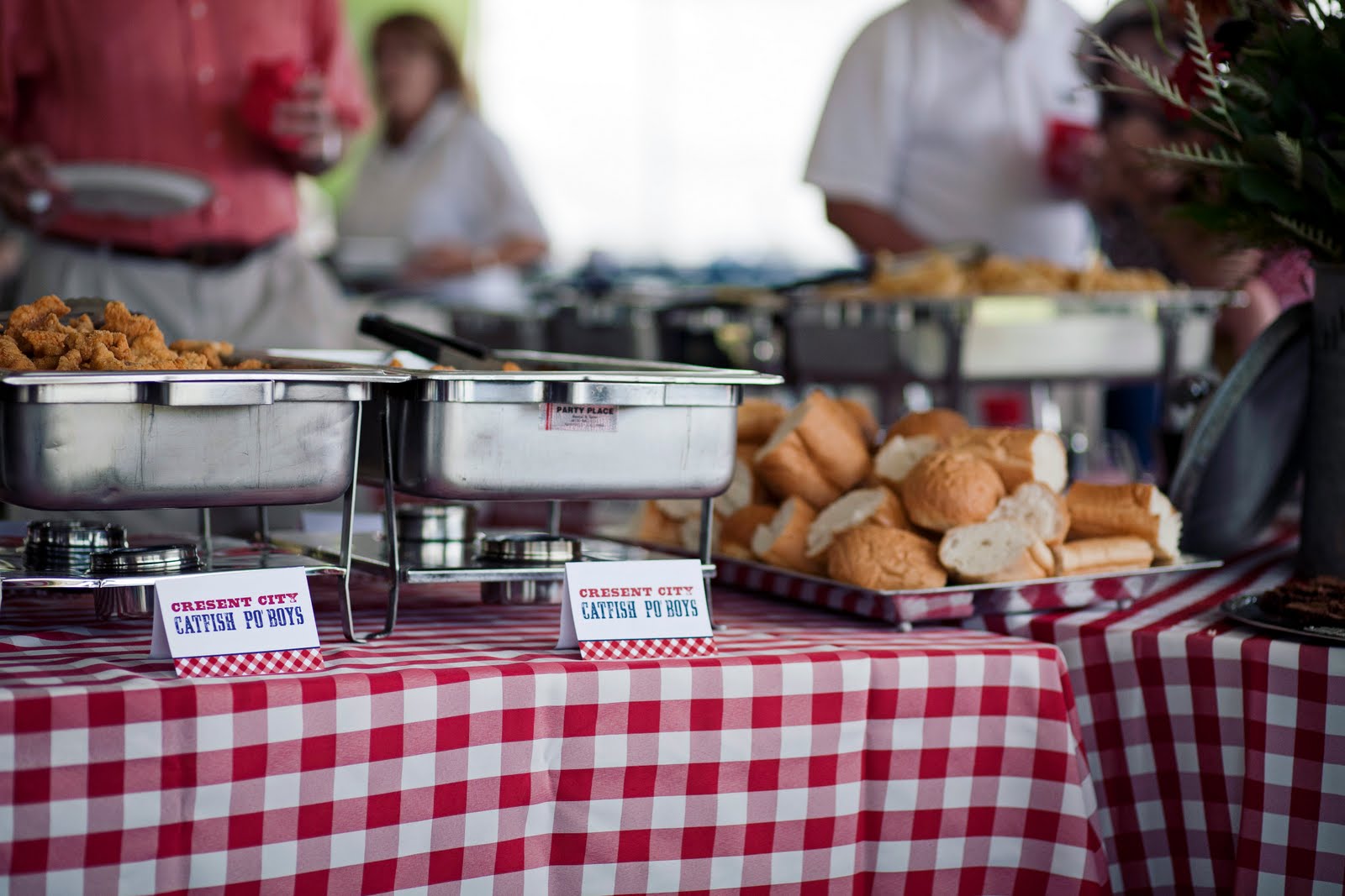 We did what we do best and created a cohesive event; from the distressed looking invitation with gingham liner, to coordinating koozies, posted signs and food cards, we think everyone definitely got down on the Farm for this southern soiree!