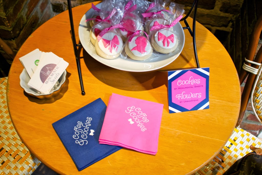 Last week, we got to help with such a fun event!! Lifestyle blogger Brittney Ann (of Hosting and Toasting) came to us to help make her “Coffee and Cookies” event…a little swankier! You may remember Brittney Ann (BAC) from her “Favorite Things” Christmas party that we helped with back in December. This time, BAC was hosting a meet-and-greet in Washington, D.C. for none other than Carly from The College Prepster! We’ve been fortunate enough to know Carly for awhile now, so it was SO fun for us to collaborate with BAC for this event!