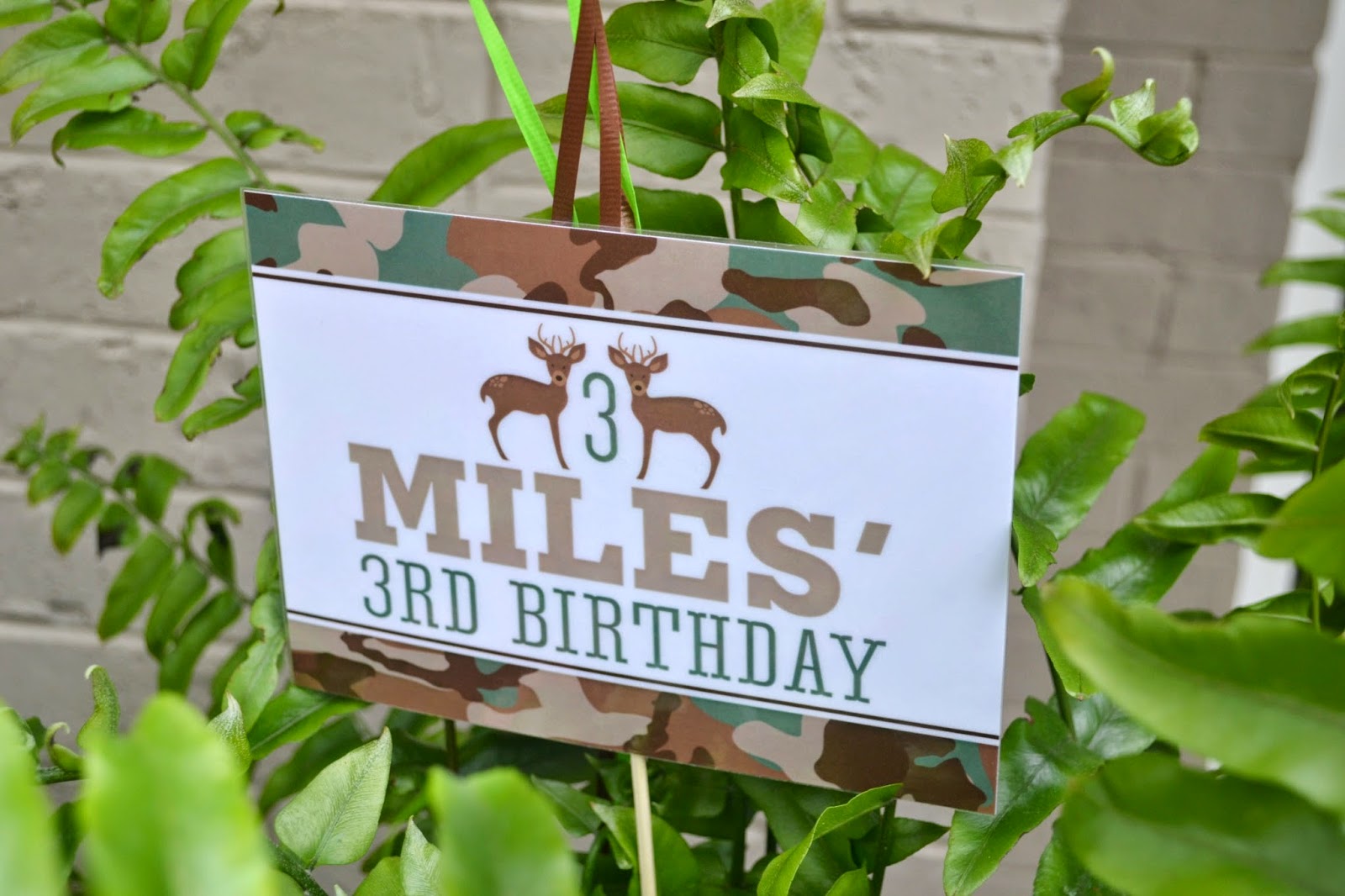 Miles is the perfect little Southern gentleman who just turned three! To help him celebrate his birthday, we helped his mom create a super swanky (and adorable) hunting themed camouflage birthday party!! You might remember Miles from some of his creative birthdays of the past including a Master’s themed golf birthday party. It was no surprise to use when his mom told us that Miles wanted his third birthday to be just as creative and fun as his party parties! We’ve never done a hunting themed camouflage party before, so we were beyond excited to get to work.