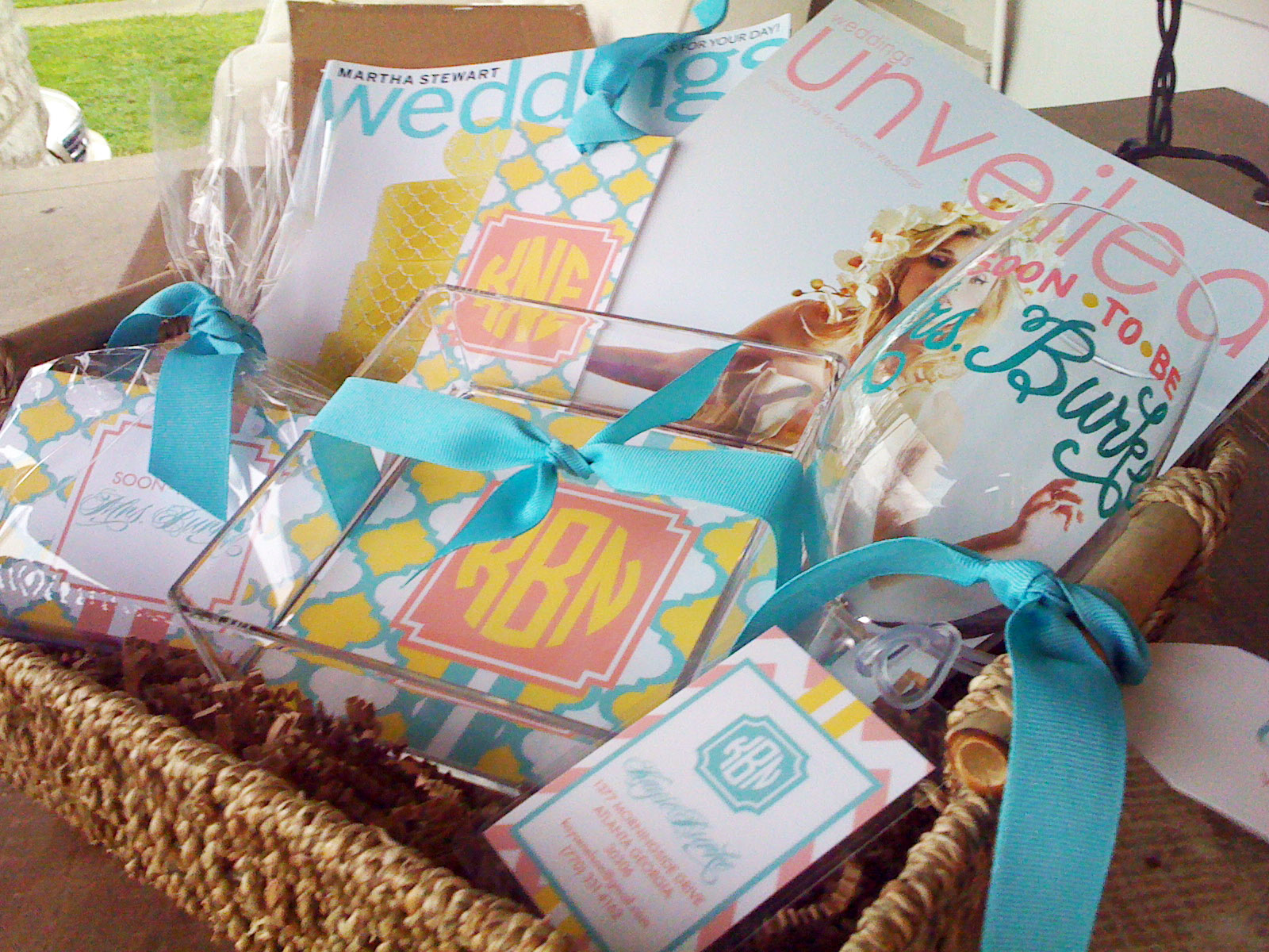 So, in true Nico and Lala fashion, we decided to base it upon the newest wedding magazines! We used Weddings Unveiled with a peachy coral on the cover, and then Martha Stewart with a lemony yellow and pale turquoise!
