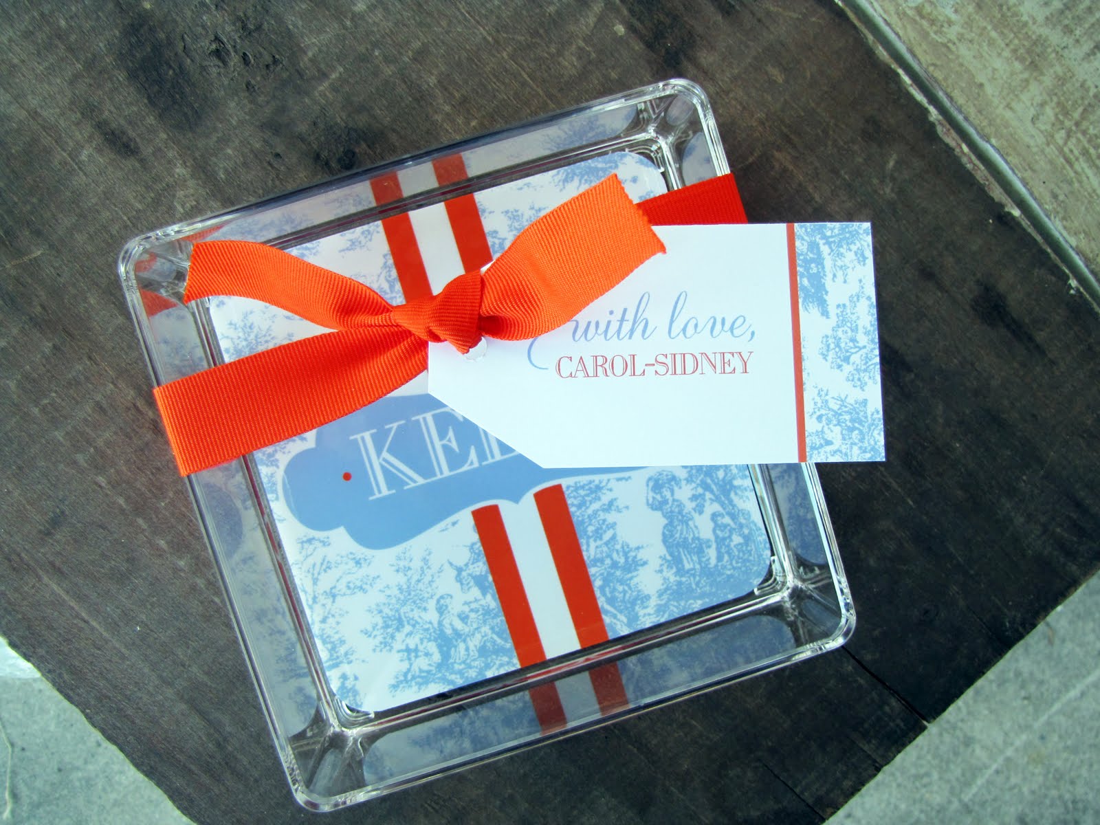 Next, we have a Seda France candle that one of our fave customers was giving as a hostess gift. She wanted a little something to add to it! So we came up with a matching catch all of course! And even added a swanky little gift tag too! This was such a hit at her shower!!