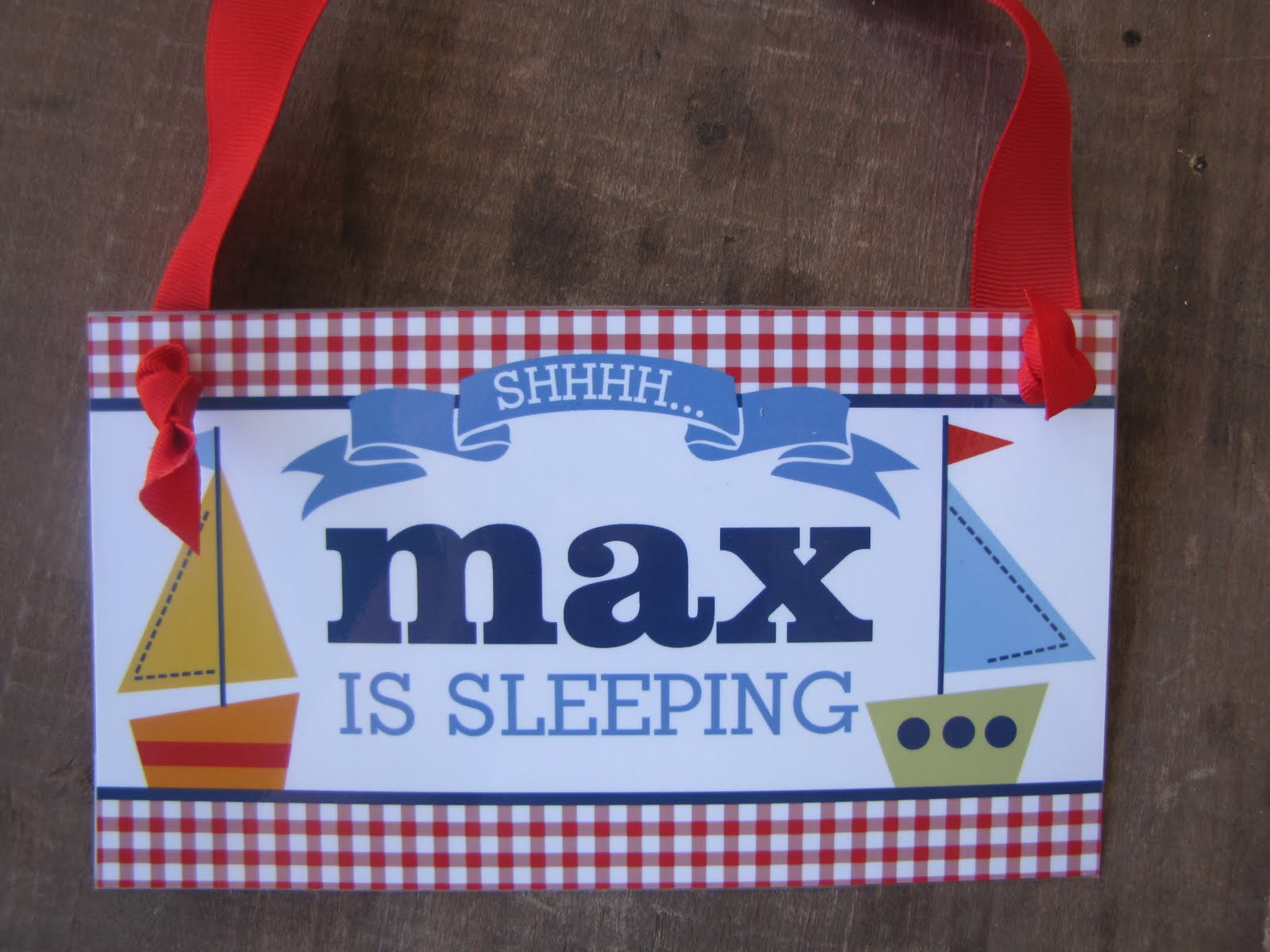 How sweet is this bedding from Pottery Barn Kids?! A new grandma emailed it to us who couldn’t help but order a sleeping baby sign for her new grandson, Max! We based it on his new nursery bedding and she absolutely LOVED it!