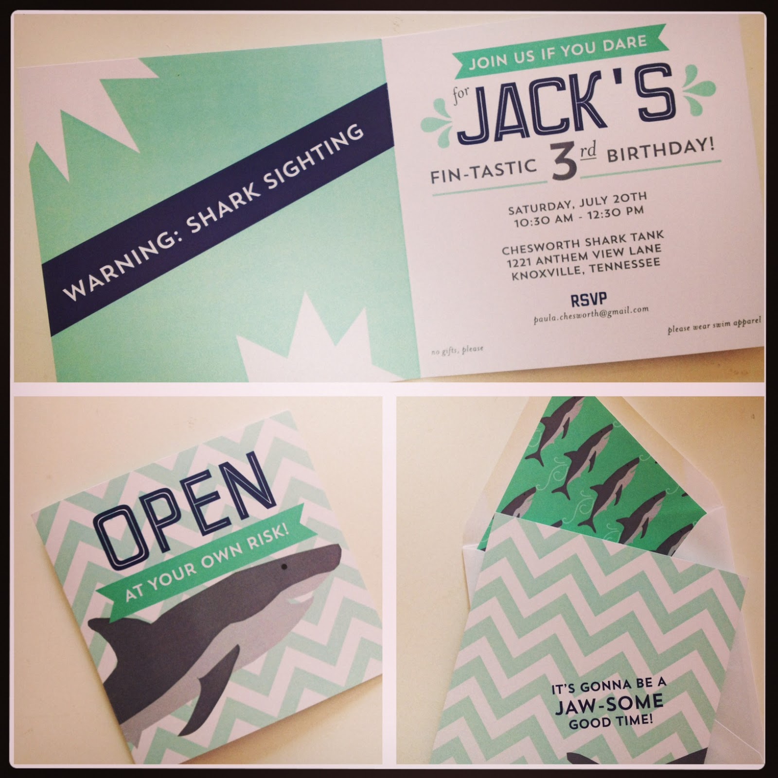 That all being said, there is one special reason we were so excited for shark week. Recently, we got to help design a JAW-some shark birthday party (which was appropriately held during shark week) for one of our favorite little customers, Jack!! You might remember Union Jack’s Olympics themed birthday party from last year (SO fun!!). This year, we helped take his party from awesome to JAW-some as he turned three! Open at your own risk…we think we see some sharks in the water at this fin-tastic shark birthday party!