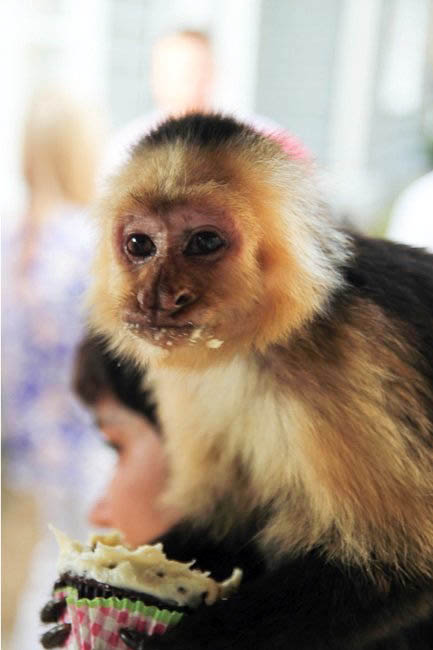 Did we forget to mention she hired bartending monkeys to come in for the extravaganza?! One is Marcel from the show Friends and the other starred in Outbreak. HAHHAHA! SO FUNNY!