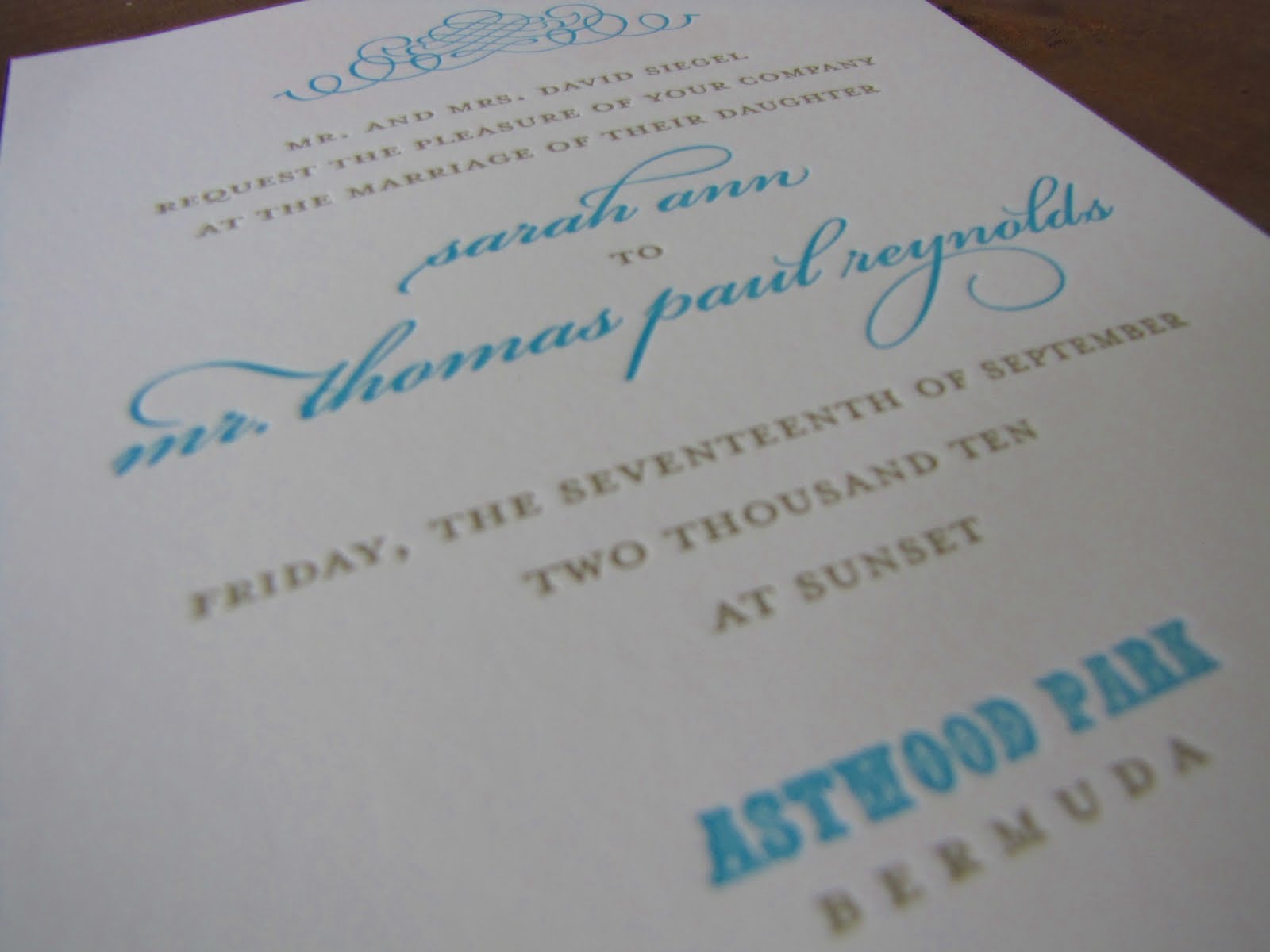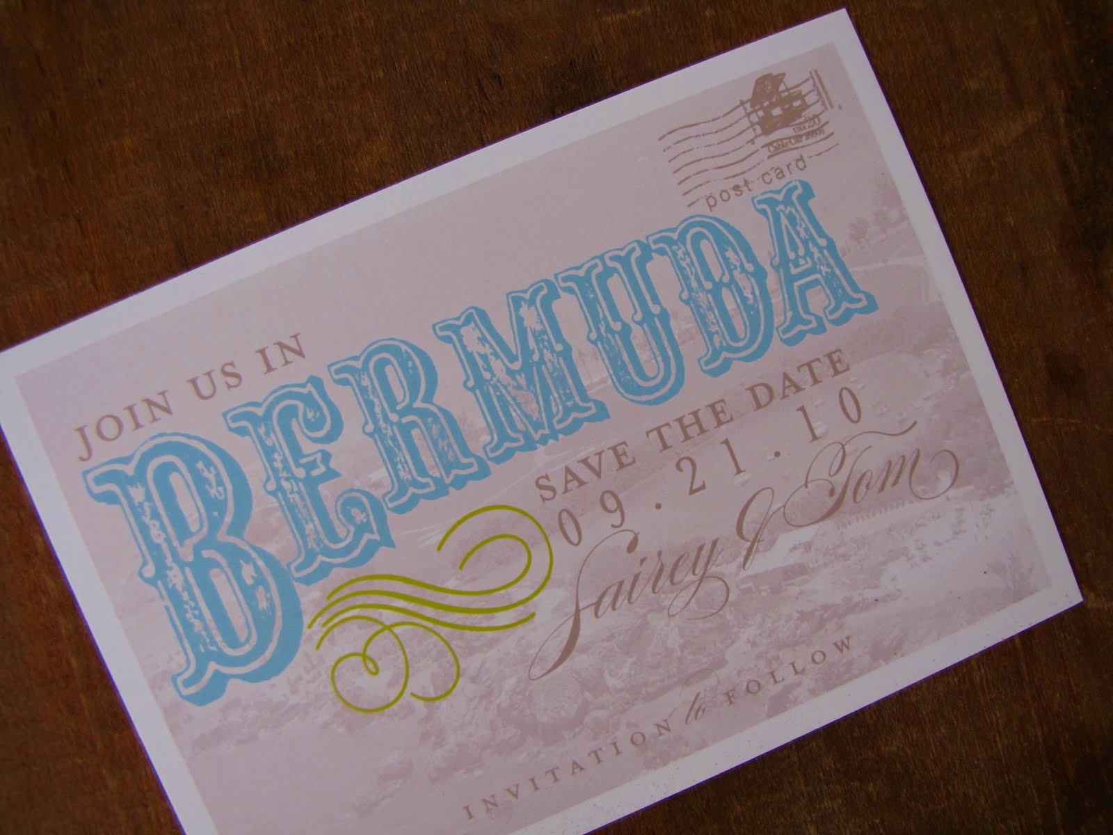 Letterpress is just so unbelievably gorgeous! We had to share this!! We worked with bride Sairey last year to do her amazing vintage postcard inspired Save the Dates. She wanted a romantic feel with the colors of Bermuda, the location of her destination wedding.