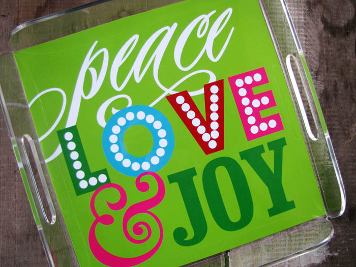 We also debuted a very swanky square tray–the insert is Peace Love and Joy on one side and Happy Everything for use year round, on the other side! Brills! Is it not precious?! What a wonderful, super cute gift for someone else…or yourself! It is 11.5 inches square and just the perfect size for a coffee table!