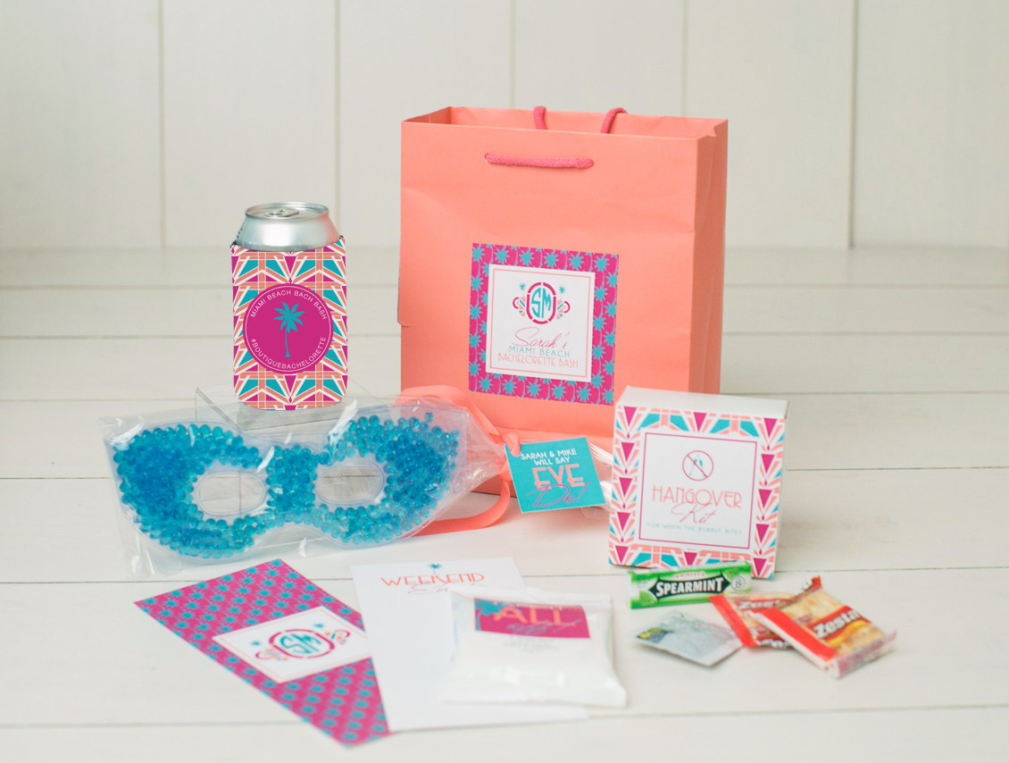 We also are kind of OBSESSED with the “Florida” themed bachelorette swag bag design as well..It’s got a little Miami mixed with a little Lilly Pulitzer…just our speed!!