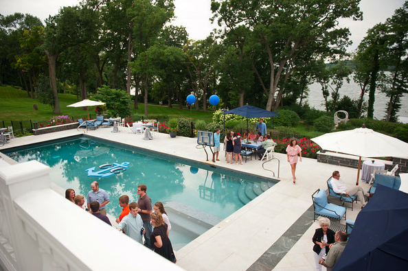 Here’s a closer look at the monogram floating in the pool! The bride’s mom traced our logo onto a piece of styrofoam using a projector, cut it out, and painted it to make it coordinate with everything else! SO creative! Can someone say Martha Stewart?! Oh, then she anchored it down in the pool…no big deal.