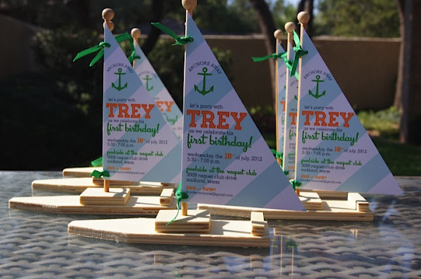 We hope you all are prepared for the ultimate cuteness of this nautical first birthday, on this Friday! We have been absolutely on the edge of our seat to get these pics from mom Brooke!!! I am sure if you follow our blog you remember the Lilly Pulitzer themed party we did for Lily’s first birthday. Well, enter younger brother Trey and his Ahoy Mates First Birthday Bash! Mom Brooke found these wooden boats and we made the invitation “sail”! So amazing!!!