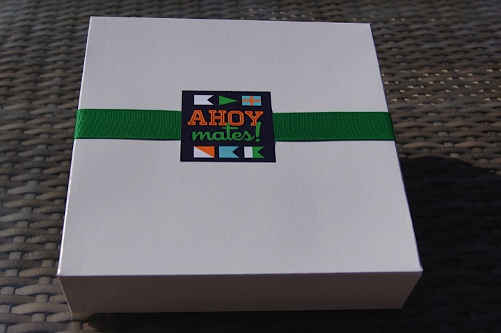 She of course hand delivered them to each guest! We provided boxes, blue and green crinkle shred, and the most adorable “Ahoy Mates” coordinating stickers!