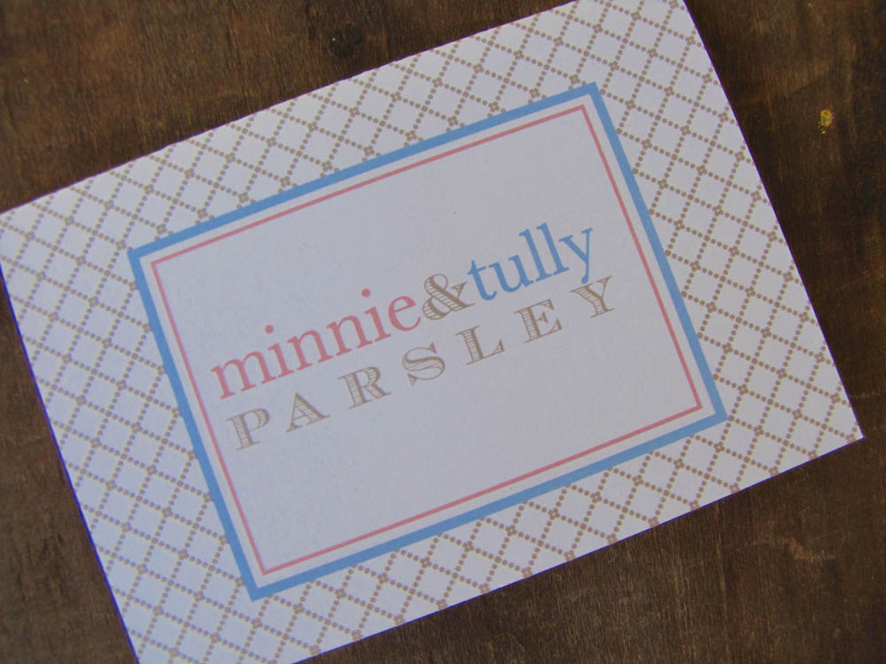 Twin Baby Notecards…Minnie and Tully..precious names!!!