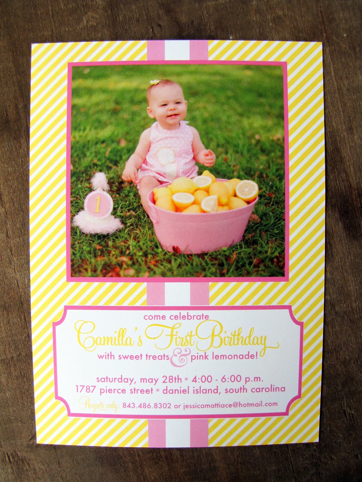 Little Camilla was turning one, so of course we had to go all out for her! Mom had the FAB idea for a photoshoot before the party so we could make an UBER swanky invitation with sweet Camilla and a bucket of lemons! How precious is this?!??!? This is SUCH a great way to really make your invitation stand out among the crowd, and to show some personality! And it doesn’t hurt that Camilla is so adorable, either.