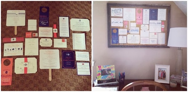 The perfect combination of sweet Southern touches and preppy chic, are we right?! After the wedding, the bride, Paige, arranged all of her wedding swag in a frame above her desk! Such a great keepsake, see the finished product below!!