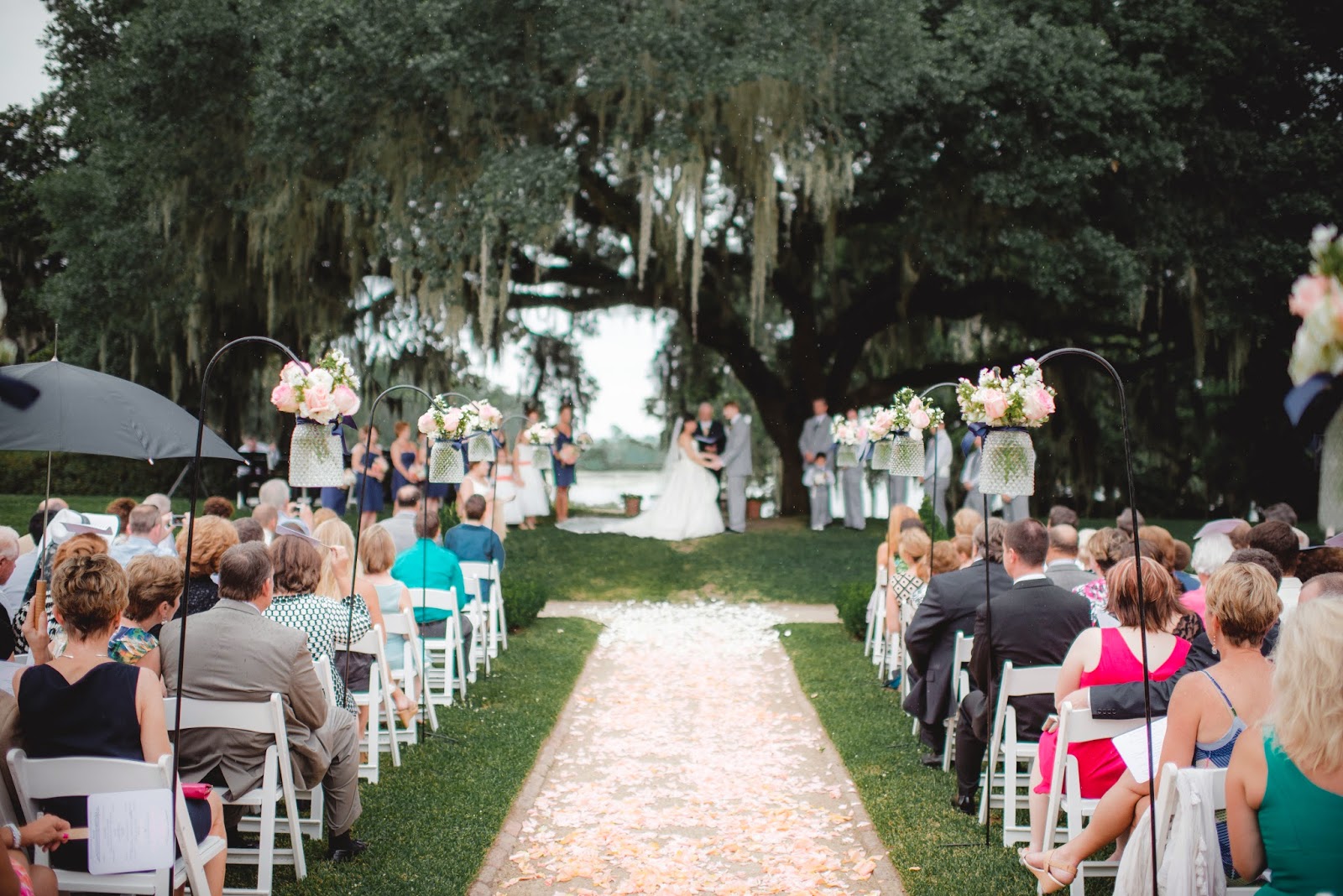 It’s true what they say that everything is sweeter in the South…the people, the tea, and most definitely sweet, Southern weddings! Both N&L hail from below the Mason-Dixon line, so we pretty much consider ourselves experts on all things Southern. Paige and Chris’ soiree might just be the sweetest southern wedding we were a part of in 2013! It was a classic southern wedding–complete with the pair tying the knot under oak trees dripping with Spanish moss. Surrounded by their closest friends and family, Paige and Chris turned this Charleston plantation into a celebration of love with coral and navy accents, lush flowers, and some seriously swanky N&L swag! So grab your sweet tea, and check out this Charleston wedding with lots of Southern charm!!