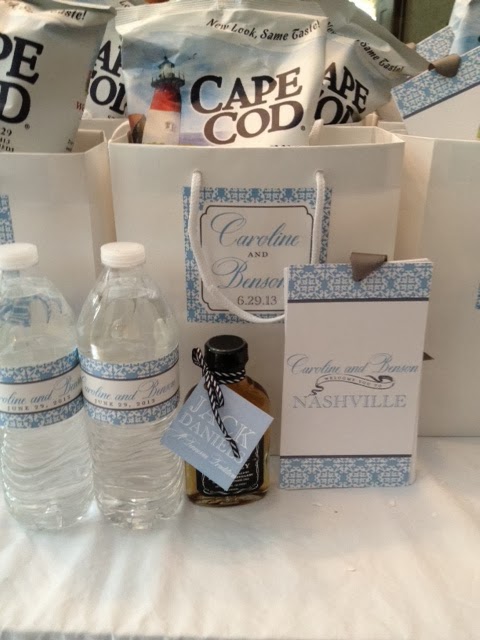 In addition to save the dates, we also helped create welcome bags for their wedding weekend!! Inside each bag was an itinerary, water bottles (with custom labels, of course!), potato chips, and the original Tennessee tradition, Jack Daniels. Take a peek below at their welcome bags, and the rest of their beautiful wedding day!
