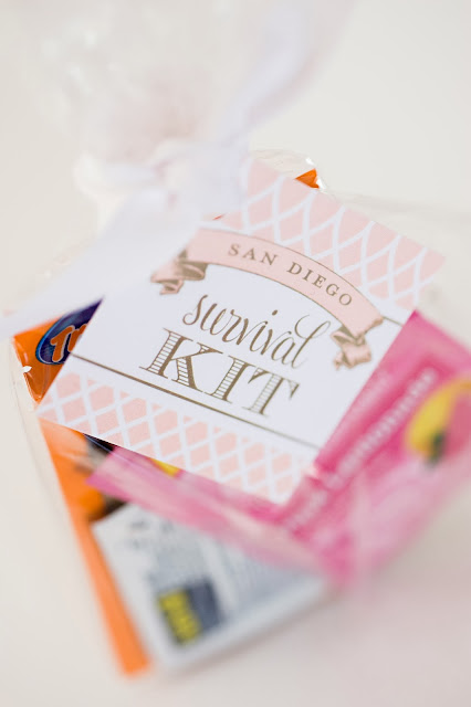 Today we need to take a mental vacation to escape the brutal Chicago winter! So today we’re heading to the west cost to share Penny and Ben’s sunny San Diego wedding!! Penny and Ben found us a little late in the wedding game, and already had their save the dates and invitations printed. But not to fear!! We were still able to help the couple make their wedding day special (and swanky)! For the couple we designed custom wedding welcome bags and event signage that coordinated with their big day. The result, a special day accented with their beachy wedding colors (coral and brown). Love is sweet, so go ahead and take a peek at Penny and Ben’s San Diego wedding swag!