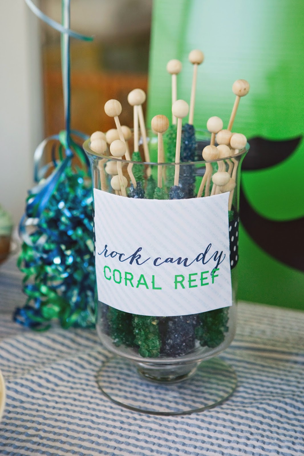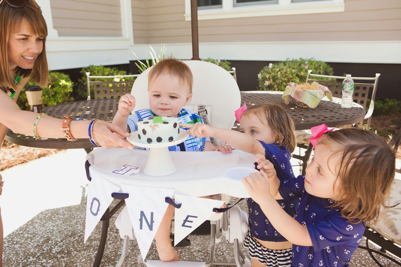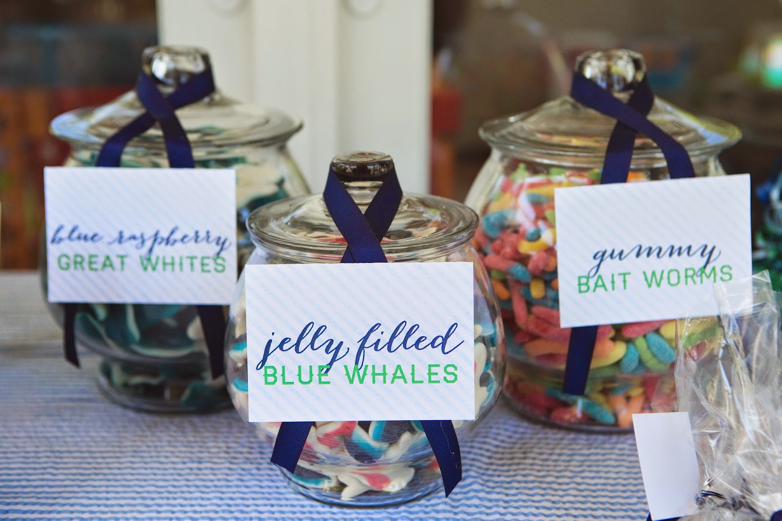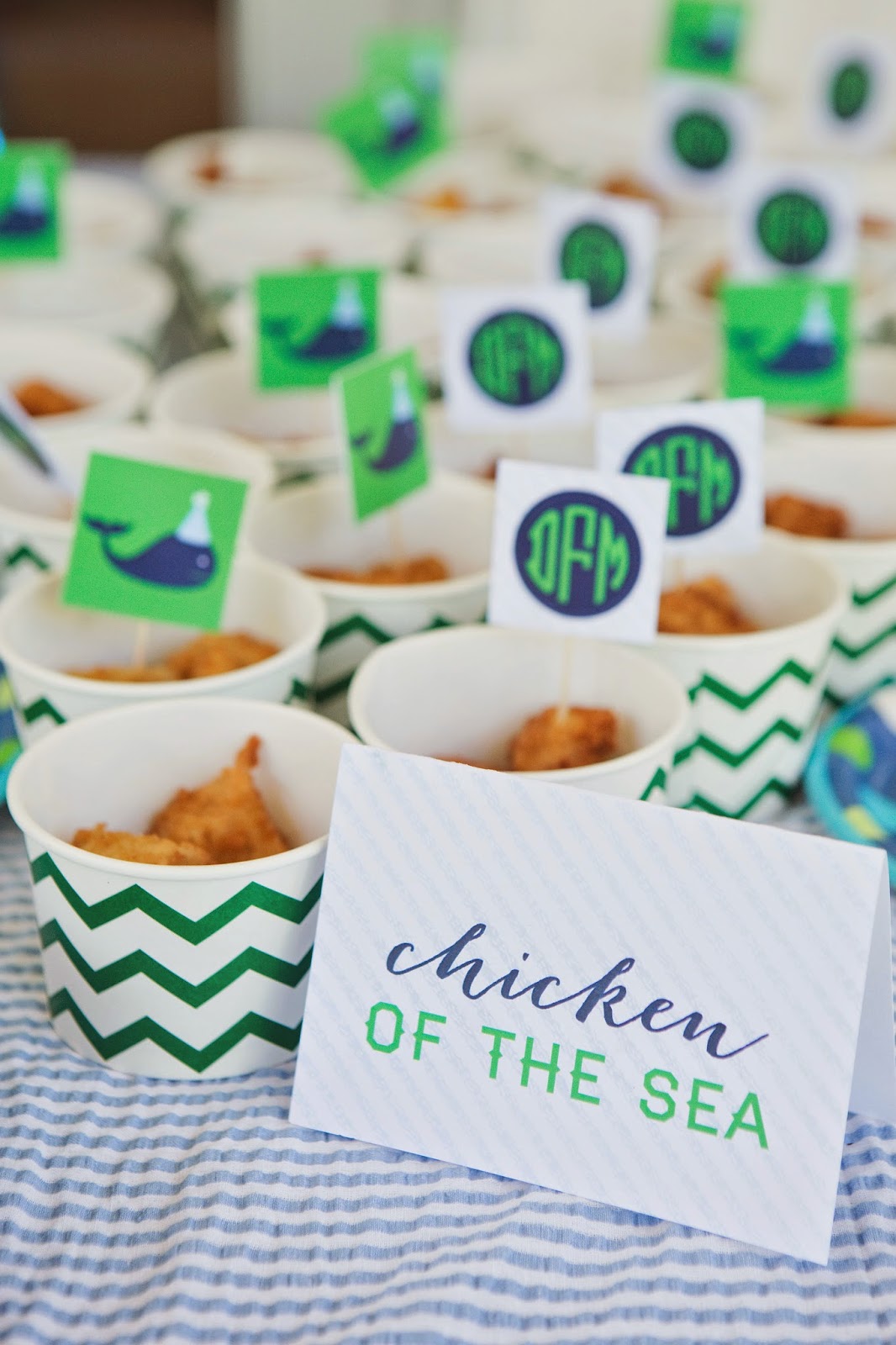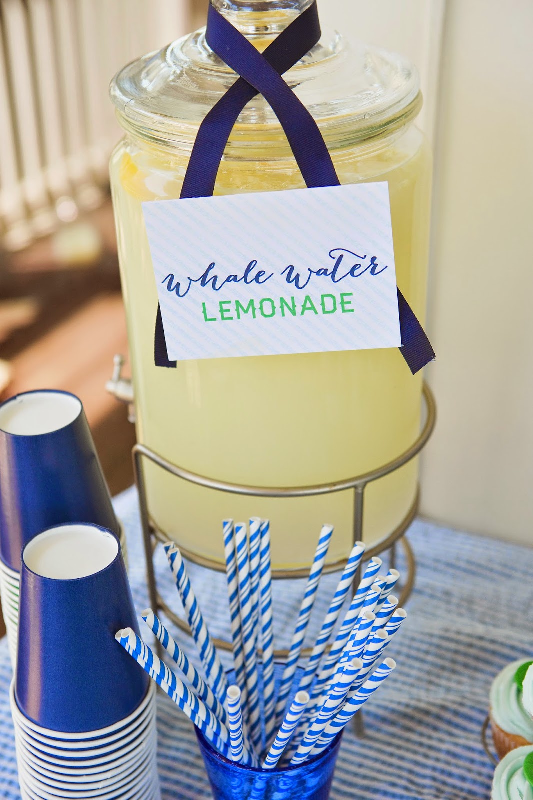 Today we have THE cutest whale birthday to share! Declan turned one in April, so his parents threw an adorable underwater party in his honor. Deep sea critters (who were ready to celebrate in their adorable party hats) were paired with a preppy seersucker pattern and bright colors to make him a whale-y cute party invitation! This whale birthday was both kid and adult friendly. While the cute design accents and decorations were fun for adults, kids got to enjoy sweet treats, splash around in a pool, and slide down an inflatable slide! So fun!! Check out more from Declan’s whale-y cute first birthday below!