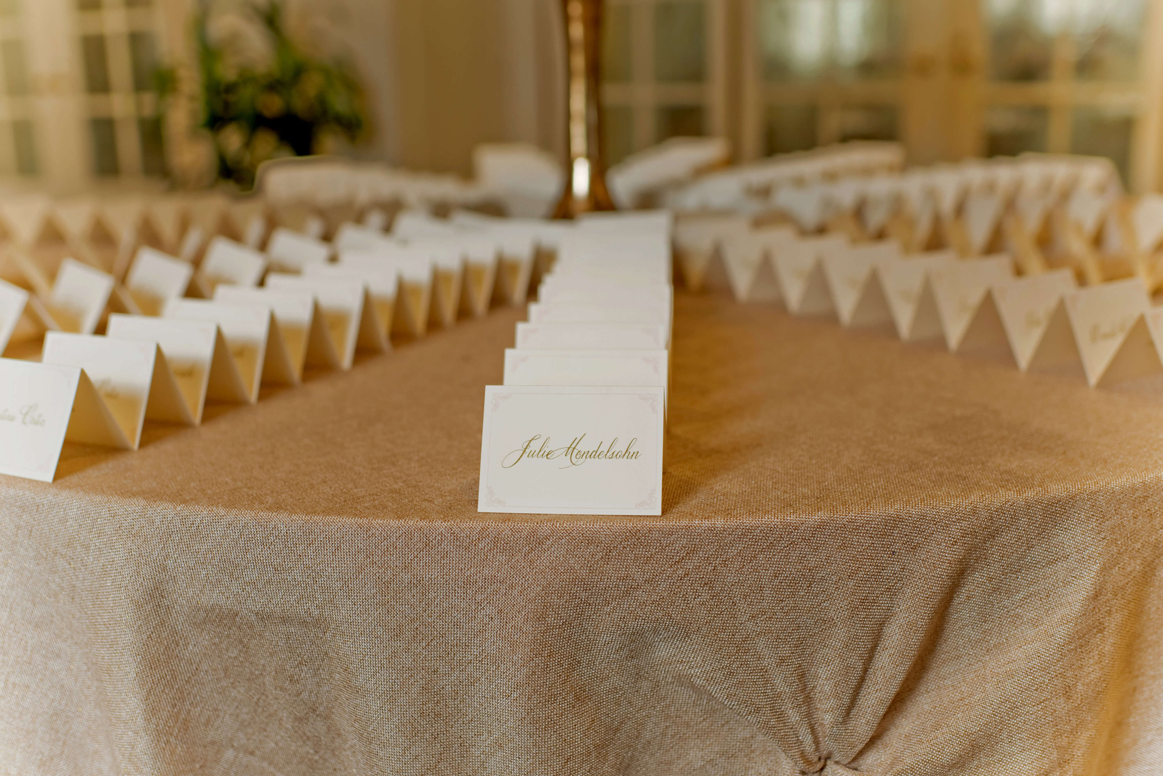 Taylor and Matthew’s blush and gold Virginia wedding we designed upon her vision of monograms, hydrangeas, and classic touches! Taylor had used us for years prior to the couple’s engagement so when she got engaged, we were thrilled to hear she wanted to be one of our Couture brides! After attending the University of Virginia, they thought it only appropriate to be married at the campus chapel, which as you can see is breathtaking! Since Taylor was a Couture bride, we began with the couple’s wedding logo, which she wanted tailored and classic, with an interlocking monogram. We were able to use both colors on the monogram to give it depth and we used the wedding logo on the top of their wedding invitations! We printed the monogram in blush and gold thermography, and the rest of the text throughout the ensemble in gold for their blush and gold Virginia wedding! These invitations were so simple and fabulous, and we love how the use of a monogram or wedding logo can really make paper so much more interesting and fun! The interlocking wedding monogram was also used on the wedding programs and tied with a gorgeous blush satin ribbon! Enjoy these picturesque shots from a southern Virginia wedding!